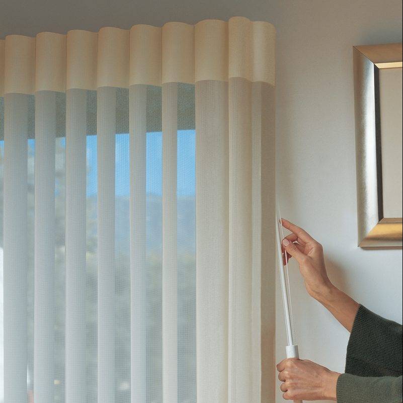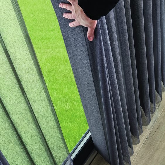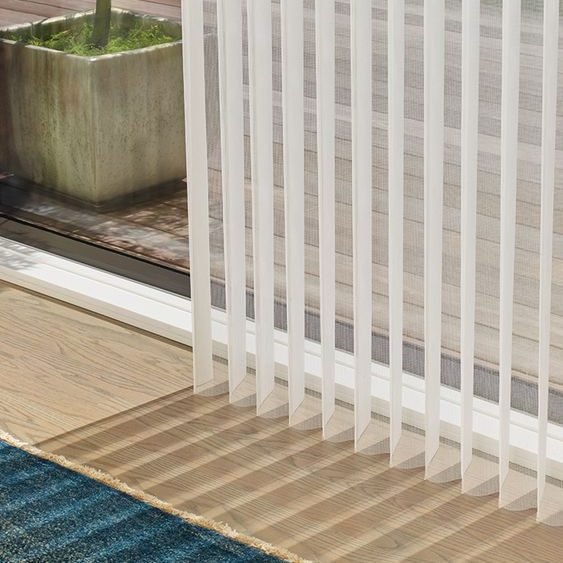 Un rideau 3 en 1: donne l’aspect d’un rideau classique, fonctionne comme un rideau zebra réside dans sa toile à alternance de bandes semi-transparentes (même effet de tamisage qu’un voile) et de bandes opaques et rideau vertical (bandes séparées qu’on peut traverser sans l’ouvrir).